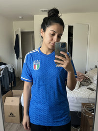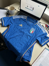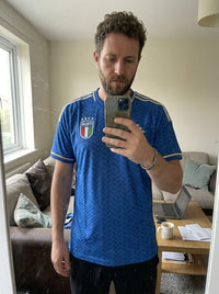 The jersey looks fantastic and the fabric is very comfortable. Perfect for supporting Italy during matches.